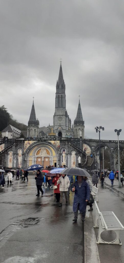 “Non appena superato il cartello con la scritta “Lourdes” ci ritroviamo in un diluvio di pioggia, non c’è che dire, un’accoglienza con i fiocchi; il tempo brutto, con una fedeltà incredibile, ci avrebbe seguiti per l’intero pellegrinaggio. A nessuno però importava veramente: troppo grande era l’entusiasmo di ritrovarci nella terra dove la Vergine si era rivelata; le due giornate di permanenza sono trascorse velocissime fra preghiere, canti, funzioni e, perché no, qualche spesa.
